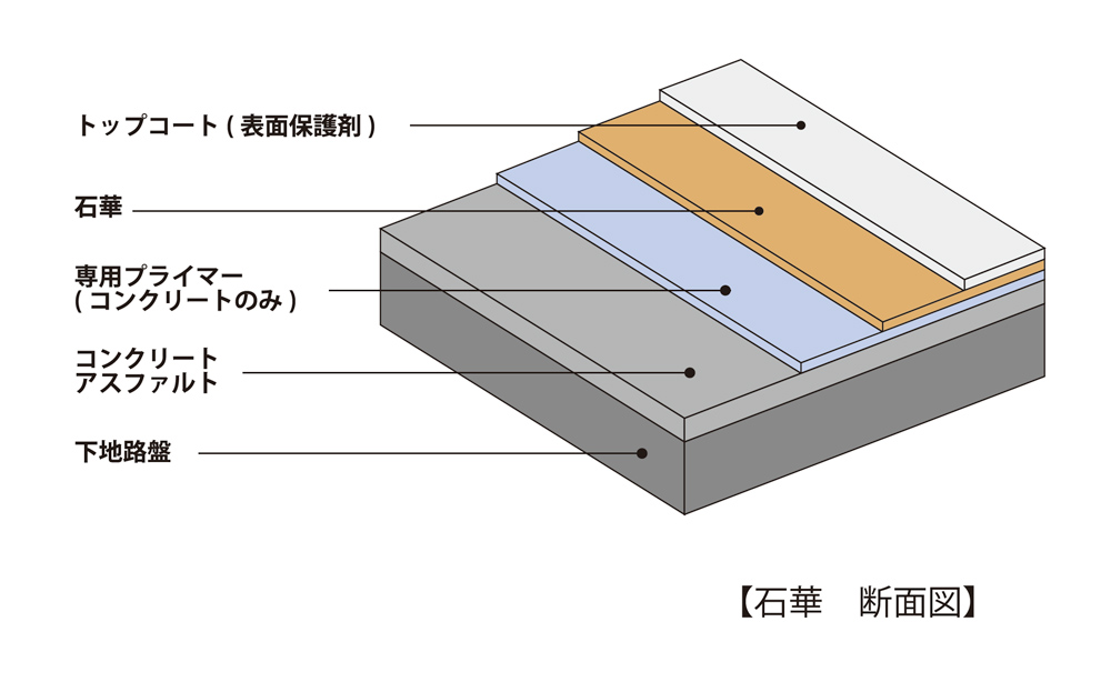 「石華」は既存のアスファルトやコンクリート等の上に直接施工できるため、